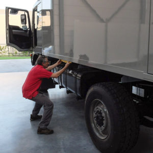 Nous avons la chance de nous faire conseiller par différentes personnes, membres d’un forum spécialisé de véhicules de voyage MAN. Ces personnes, passionnées et qualifiées dans divers domaines, nous aident considérablement tout au long de la construction. C’est en avançant pas à pas que nous nous rendons compte que construire une cellule pour un camion n’a pas grand chose à voir avec la construction d’une maison : les matériaux des murs diffèrent ; nous n’avons pas droit à l’erreur, chaque millimètre à son importance, un trou ne se rebouche pas, une découpe faite ne se change plus.