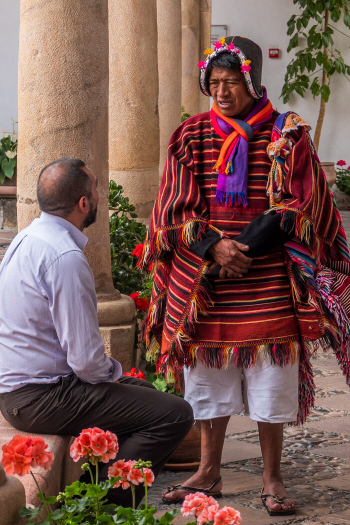 Nous y croisons par hasard un homme en habit traditionnel, de culture Yampara, coiffé de son chapeau de cuir noir.